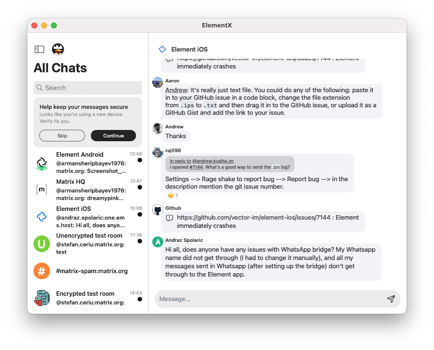There’s been some bugs and crashes keeping us hard at work this week. Along with some exciting improvements to both Element and Element X. On Element: